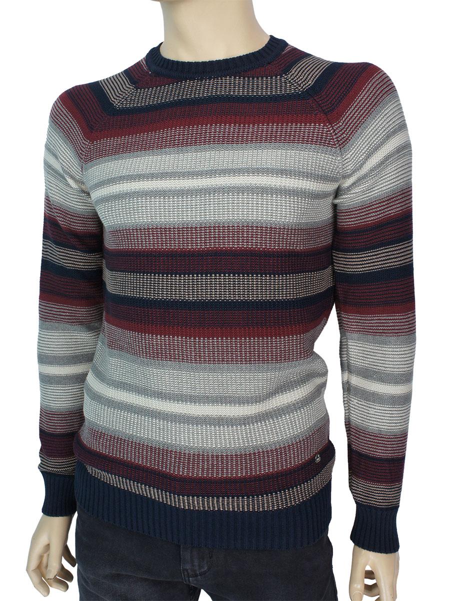 Стильний чоловічий бавовняний светр NCS 3463 Bordo в смужку
