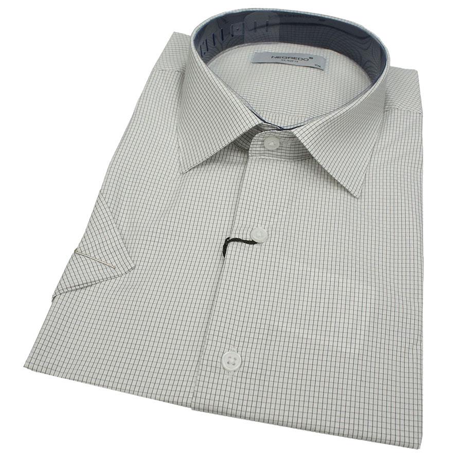 Приталена чоловіча сорочка Negredo біла в дрібну клітинку, виконана з високоякісної бавовни з додаванням поліестеру. Модель з відкладним коміром і короткими рукавами має центральну застібку на гудзики. Така модель прекрасно впишеться як в повсякденний офісний образ, так і в строгий діловий. У гардеробі кожного чоловіка має бути присутня така базова річ, що створює основу Вашого бездоганного образу.