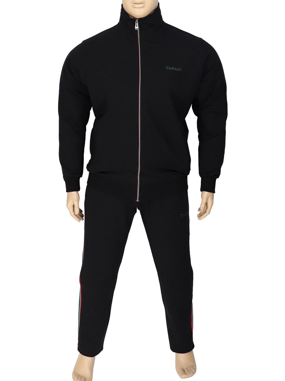 Трикотажний спортивний костюм Dekons великого розміру виконаний з якісної бавовни 60%, з додаванням поліестеру 30% та еластану 10%. Куртка із застібкою на змійці, двома кишенями та еластичними манжетами на рукавах та по низу виробу. Прямі штани оснащені бічними кишенями. У такому костюмі Ви почуватиметеся комфортно та невимушено.